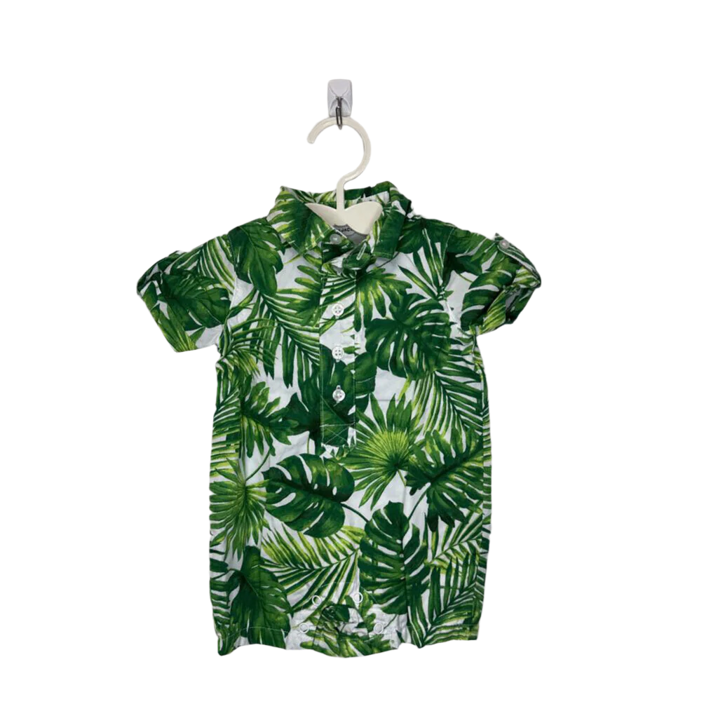 SS Collared Romper / Palm Leaves