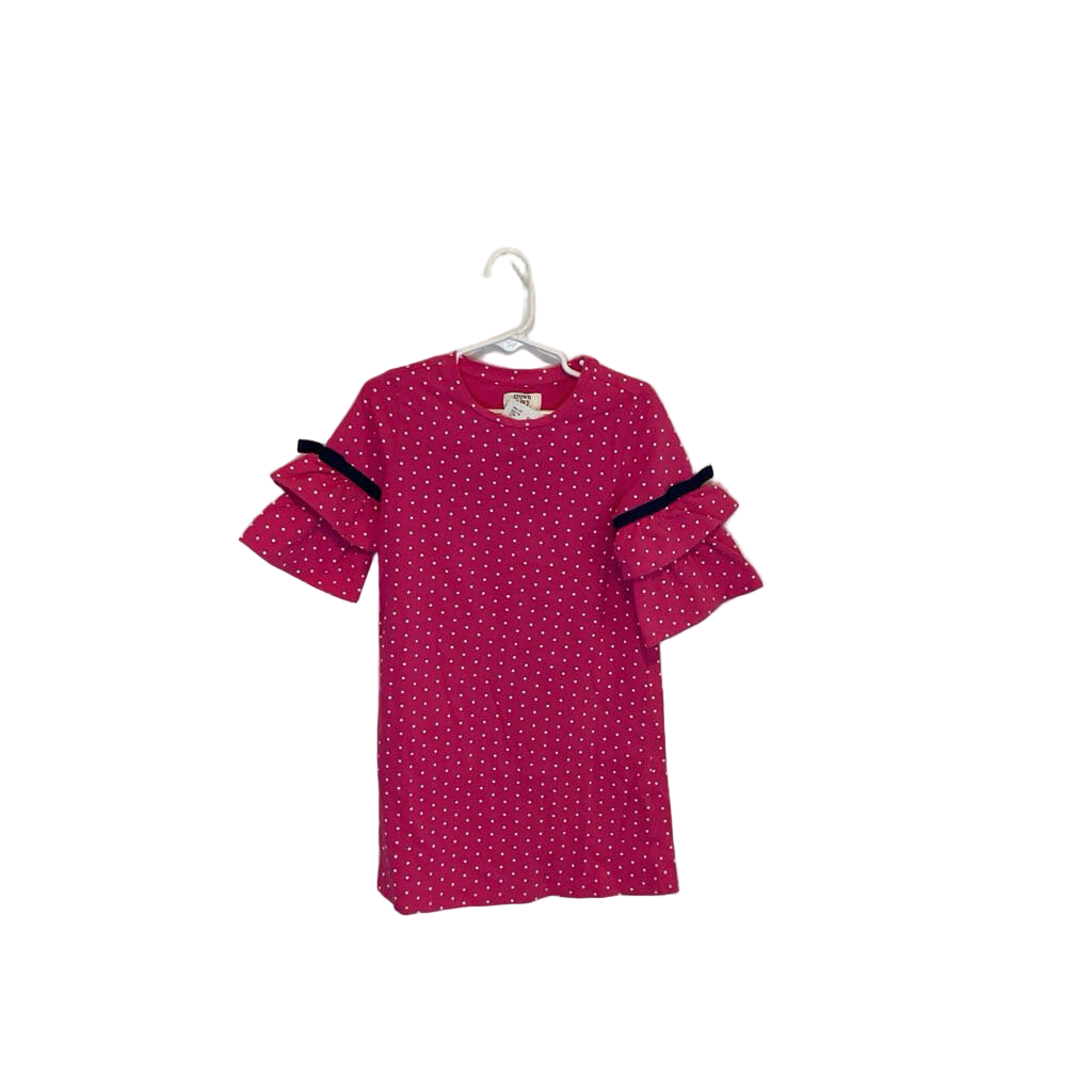 Qtr Ruffle Sleeve Dotted Dress